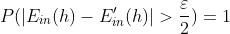 继续上文进行分析,对于假设函数 h,我们如果能够保证 其在样本集中的损失值 与 其在总体数据集中的损失值 之间高误差的概率存在一个接近 0 的上界,那么当然就能够保证 E-in(h) 与 E-out(h) 足够接近。从上文的最后结论着手继续分析,